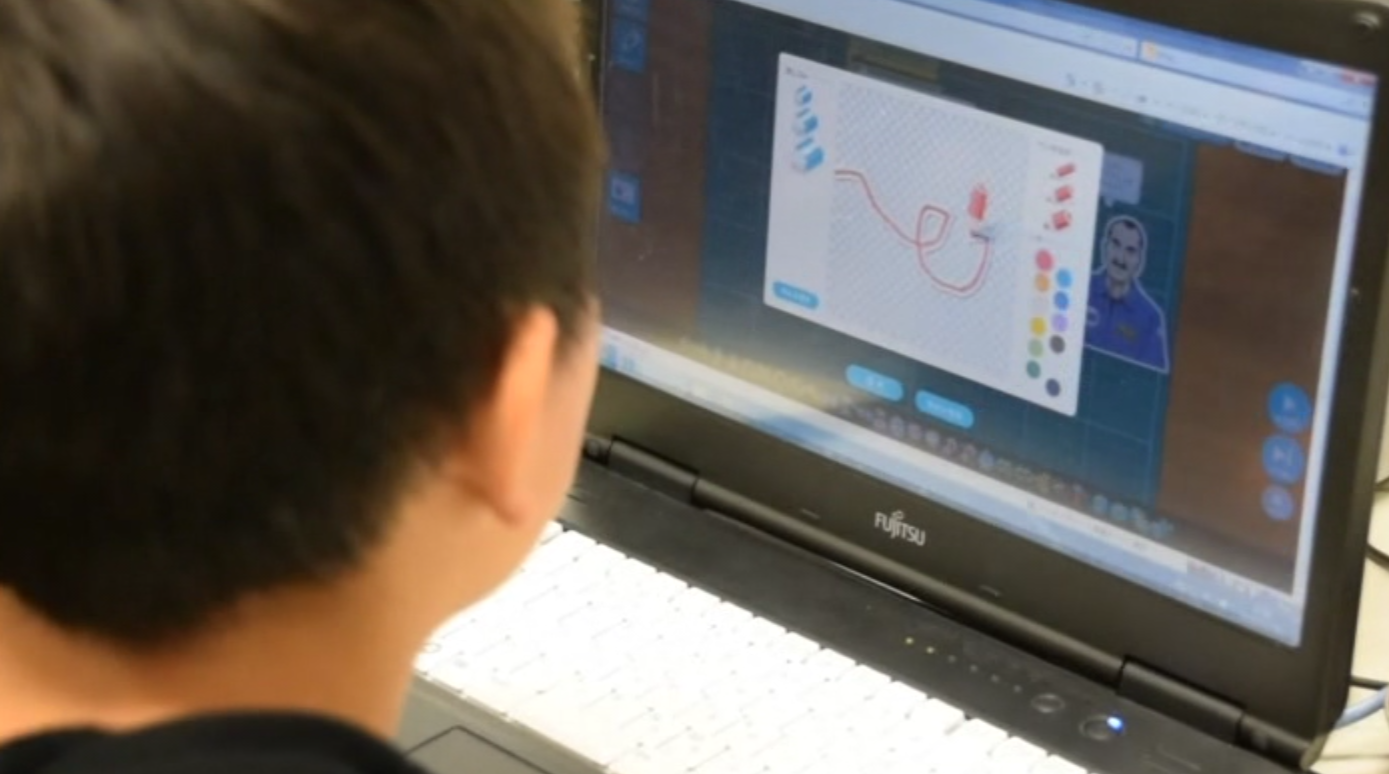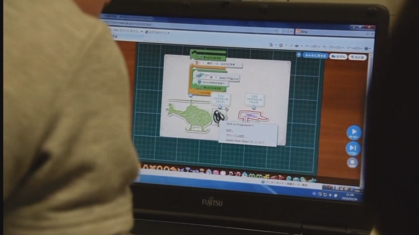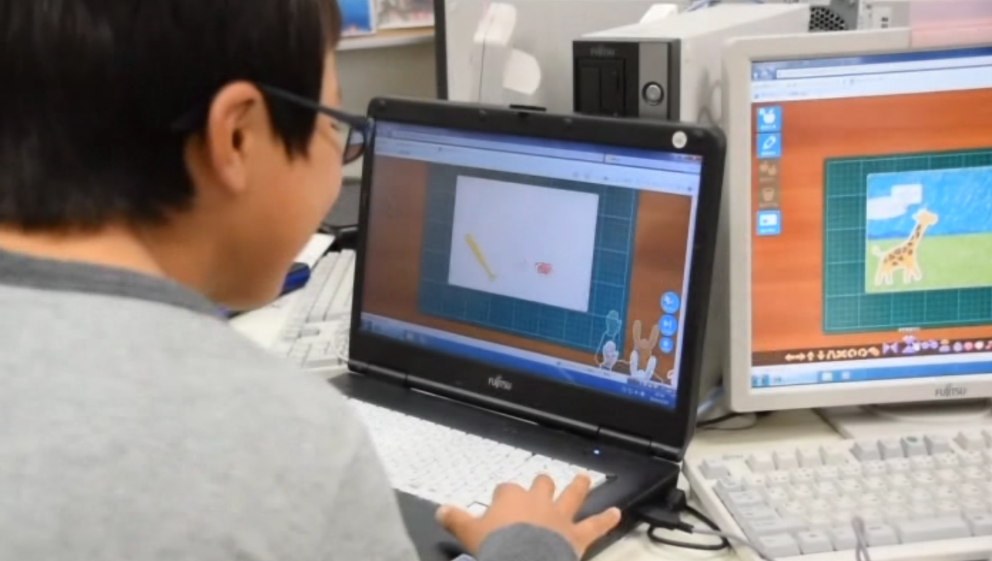 教室のPCでプログラミンあるいはスクラッチを使って、さっそくちょっとしたオリジナル・ゲームやアニメーションの制作にチャレンジしてみていただきます。